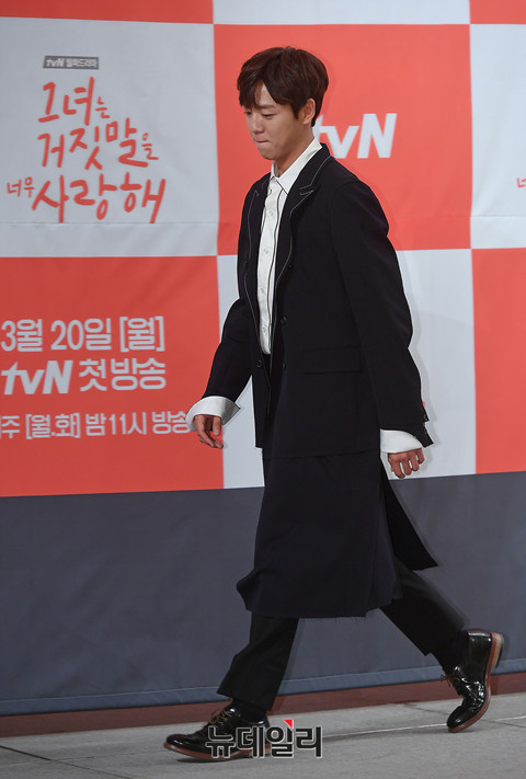 배우 이현우가 14일 오후 서울 강남구 임피리얼팰리스 호텔에서 열린 tvN월화드라마 '그녀는 거짓말을 너무 사랑해(연출 김진민, 극본 김경민)' 제작보고회에서 포토타임을 갖고 있다. 이현우는 천재 작곡가 강한결 역을 맡았다.