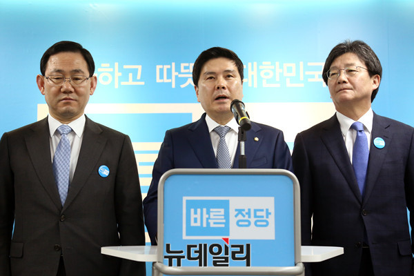 자유한국당을 탈당한 지상욱 의원이 15일 서울 여의도 바른정당 당사에서 입당 기자회견을 하고 있다.