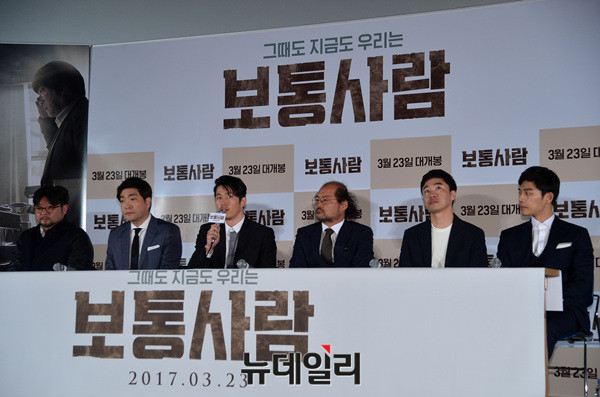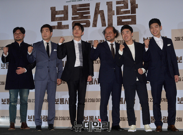 영화 '보통사람(감독 김봉한)'의 배우들(손현주, 장혁, 김상호, 지승현, 조달환)이 15일 오후 왕십리CGV에서 열린 언론시사회에 참석해 포토타임을 갖고 있다.