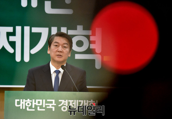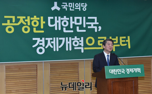 대선출마를 선언한 국민의당 안철수 전 대표가 16일 오전 국회 의원회관에서 '공정한 대한민국 경제개혁으로부터'를 주제로 공약발표 기자회견을 하고 있다.