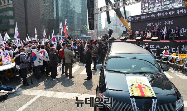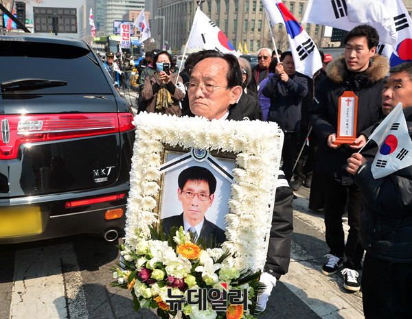 이날 영결식과 운구행렬을 마친 시민들은 대한문으로 돌아와 '제2차 탄핵심판무효 국민저항을위한 태극기집회'를 이어갈 예정이다.