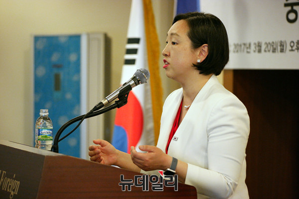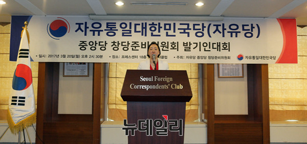 인지연 북한동포와통일을위한모임(북통모) 대표가 20일 오후 한국프레스센터에서 열린 자유통일대한민국당(가칭 자유당) 중앙당창당준비위원회 발기인대회에서 대표발언을 하고 있다.