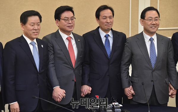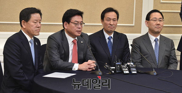 4당 원내대표들(주승용 국민의당, 정우택 자유한국당, 우상호 더불어민주당, 주호영 바른정당)이 20일 오전 국회에서 귀빈식당에서 회동을 갖고 있다.