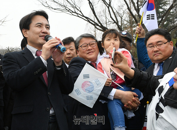 앞서 이날 김 후보는 오전 경북 성주군 선남면에 위치한 조부 묘소와 경북 구미 박정희 전 대통령 생가를 찾았다. 이어 방문한 서문시장에서 상인회사무실을 방문하고, 직접 바지도 구매했다. 태극기를 흔들며 모인 지지자들과 연단에 올라 애국가를 부르기도 했다. (대구=뉴데일리 정상윤 기자)