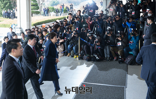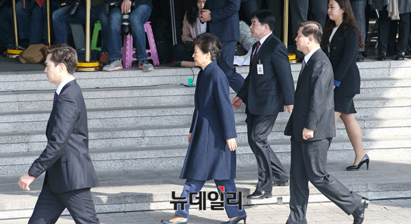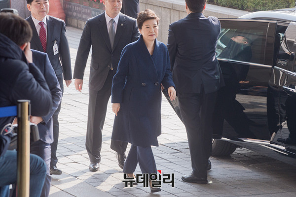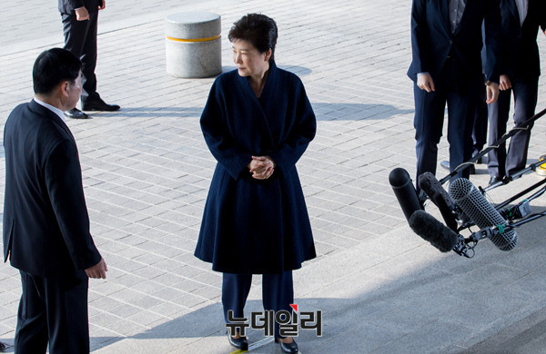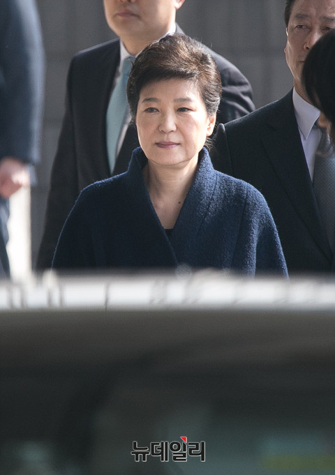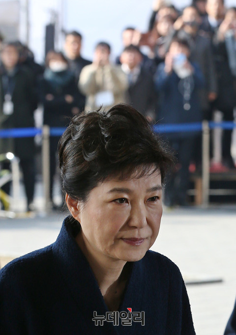 • 박근혜 전 대통령이 21일 오전 피의자 신분으로 서울 서초구 서울중앙지검에 출석하고 있다.(사진=공동취재단)