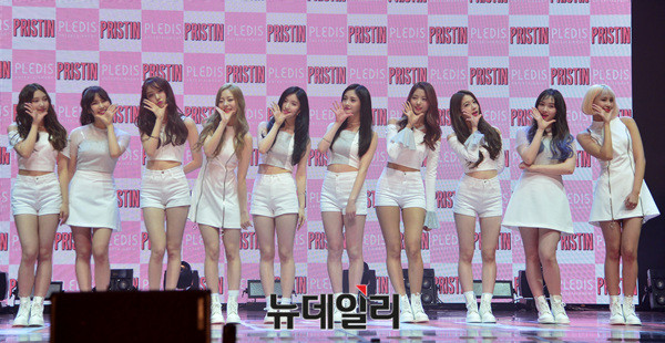 그룹 프리스틴(PRISTIN : 나영, 은우, 로아, 레나, 유하, 결경, 예하나, 카일라, 성연, 시연)이 22일 오후 서울 서초구 한전아트센터에서 열린 데뷔 첫 미니앨범 '하이!프리스틴(HI! PRISTIN)' 발매 기념 쇼케이스에 참석해 포토타임을 갖고 있다.