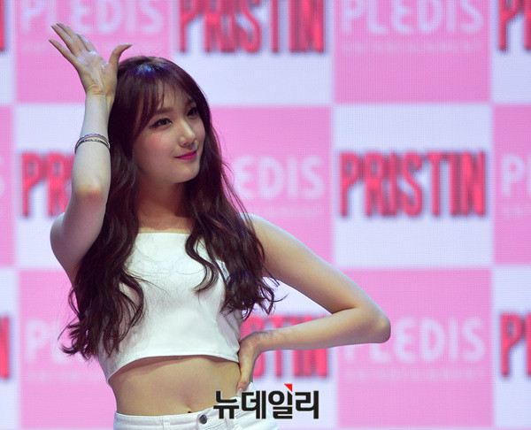 그룹 프리스틴(PRISTIN : 나영, 은우, 로아, 레나, 유하, 결경, 예하나, 카일라, 성연, 시연) 로아가 22일 오후 서울 서초구 한전아트센터에서 열린 데뷔 첫 미니앨범 '하이!프리스틴(HI! PRISTIN)' 발매 기념 쇼케이스에 참석해 포토타임을 갖고 있다.