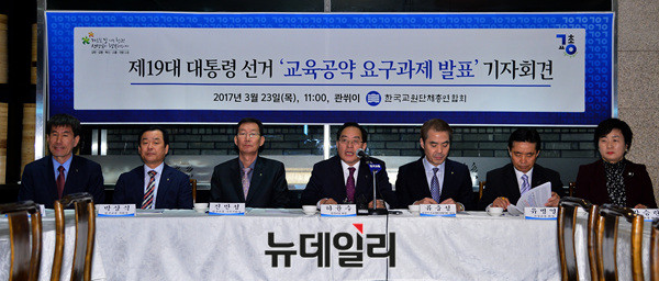한국교원단체총연합회(회장 하연수)가 23일 오전 서울 종로구 흥국생명빌딩에서 '19대 대통령선거 교육공약요구 과제발표' 기자회견을 개최했다.