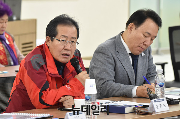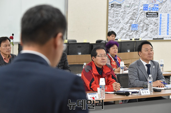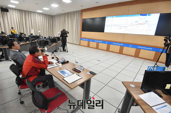 대선 출마를 선언한 자유한국당 홍준표 경남도지사가 25일 오후 평창 동계올림픽 조직위원회를 방문해 올림픽 진행상황을 전검하고 있다. (강원 평창=뉴데일리 이종현 기자)