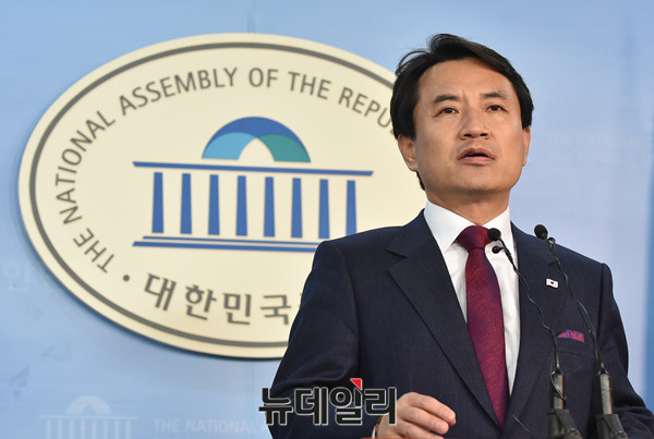 대선출마를 선언한 자유한국당 김진태 의원이 27일 오전 국회 정론관에서 대선 공약 발표 기자회견을 하고 있다. 이날 김 의원은 대입 수시폐지, 로스쿨 폐지를 공약으로 발표했다.