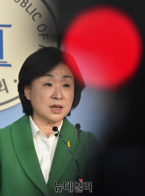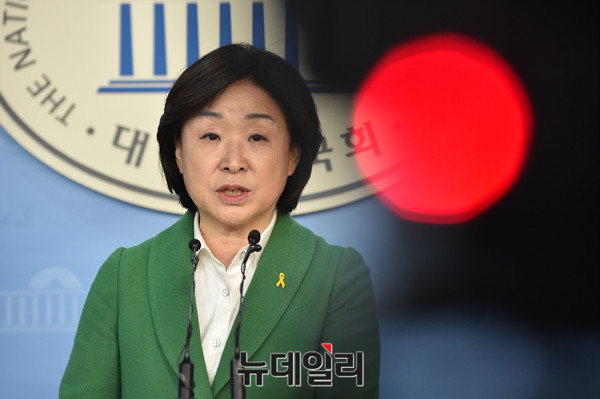 대선출마를 선언한 정의당 심상정 대표가 27일 오전 국회 정론관에서 대선 공약 발표 기자회견을 하고 있다.
