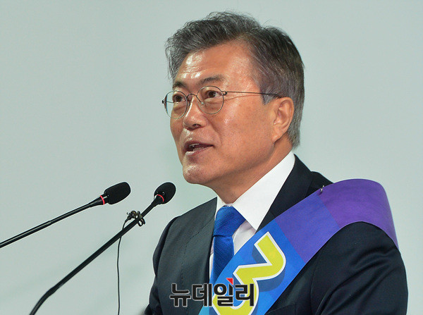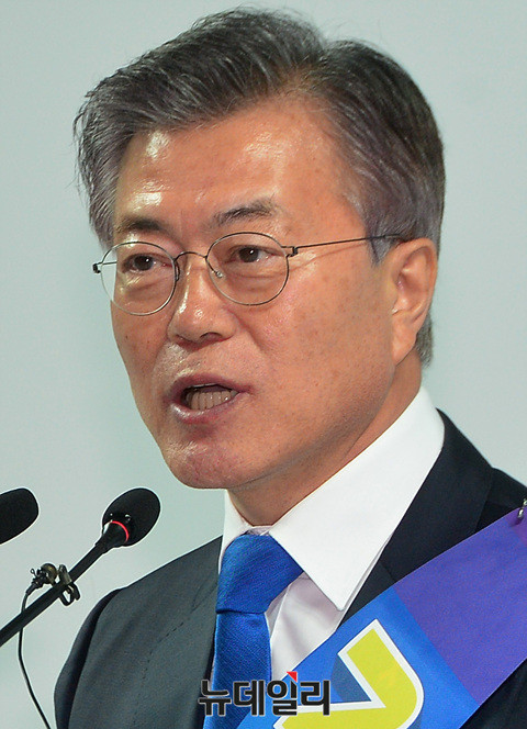 대선출마를 선언한 더불어민주당 문재인 전 대표가 27일 오후 전남 광주여대시립유니버시아드체육관에서 열린 더불어민주당 '제19대 대통령후보자 호남권역선출대회'에서 정견발표를 하고 있다.
