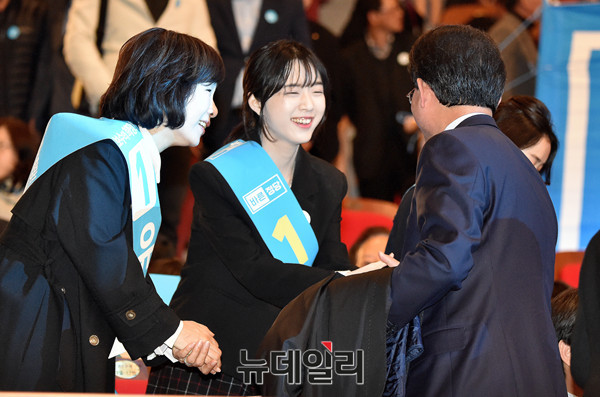 바른정당 제19대 대통령후보자 선출대회가 28일 오후 서울 송파구 올림픽공원 올림픽홀에서 열린 가운데 유승민 대선주자 딸인 유담 씨가 참석해 류성걸 전 의원과 인사를 나누고 있다.