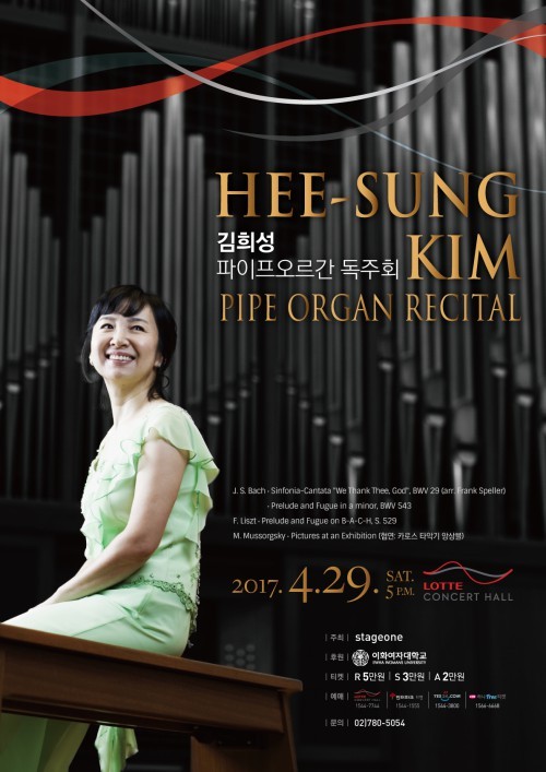 오르가니스트 김희성(이화여대 교수)이 파이프 오르간 독주회를 연다.김희성의 독주회는 국내 최초로 파이프 오르간이 설치된 클래식 전용홀 롯데콘서트홀에서 4월 29일 오후 5시 개최된다.롯데콘서트홀에 설치된 오르간은 리거(Rieger)社에서 제작한 오르간으로 개발부터 설치까지 3년 이상이 소요됐으며, 5천여 개의 파이프를 통해 68개의 소리(스탑)을 구현한다.이날 1부에서는 바흐의 '칸타타 BWV 29 중 신포니아', '프렐류드와 푸가 BWV 543'와 함께 리스트가 바흐에 대한 존경의 마음을 가지고 작곡한 ]B-A-C-H 주제에 의한 프렐류드와 푸가'를 들려준다.2부에서는 무소르그스키의 '전람회의 그림'을 카로스 타악기 앙상블과 함께 선보인다. 이번 협연을 통해 '악기의 오케스트라'라고 일컬어지는 파이프 오르간의 웅장하면서도 고요하고 화려한 매력을 느낄 수 있다.김희성은 연세대학교 음악대학 기악과와 동대학원을 졸업하고, 미국 텍사스 오스틴 주립대학에서 음악박사(D.M.A)를 취득했다. 1995년 귀국 후 세종문화회관 대극장에서 20여회 독주회를 개최하면서 국내에 오르간 음악을 알리는데 크게 기여했다.김희성 파이프 오르간 독주회의 티켓 가격은 A석 2만원, S석 3만원, R석 5만원이다. 문의 02)780-5054[사진=스테이지원]