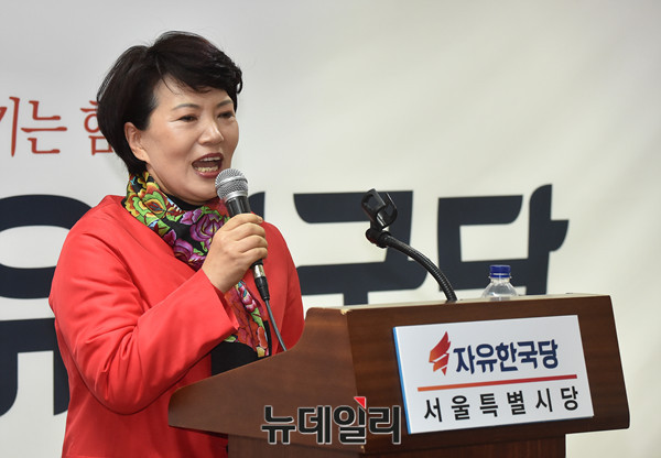 대선출마를 선언한 홍준표 경남지사 부인 이순삼 씨가 29일 오전 서울 여의도 자유한국당 서울시당에서 열린 여성당원과의 만남 행사에서 발언을 하고 있다.