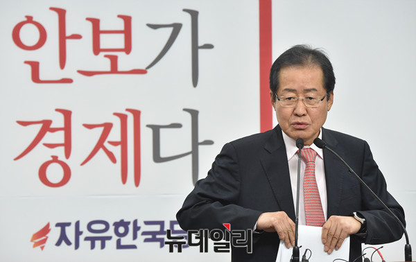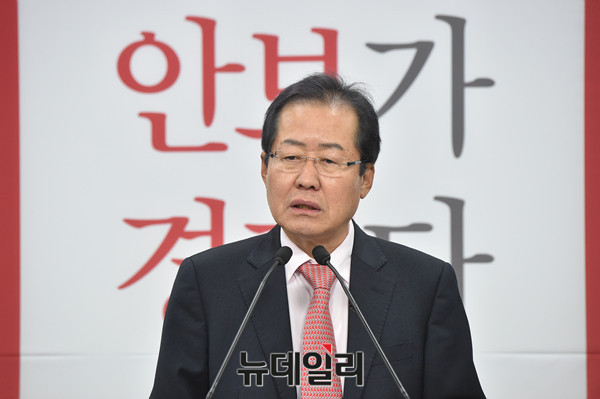 대선출마를 선언한 자유한국당 홍준표 경남도지사가 29일 오후 서울 여의도 자유한국당사에서 복지공약 관련 기자회견을 갖고 있다.