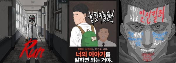 웹툰 전문 플랫폼 탑툰이 새학기 시즌을 맞아 남자들을 위한 신작 3편을 인기리에 연재중이다.'힙찔이 빙진호'(갬듕백), '어게인스트 더 월드'(토라23), '런('빨간표) 세 작품이며, '학교 폭력'을 주제로 통쾌한 복수를 보여준다는 공통점이 있다.'힙찔이 빙진호'는 현실에 좌절한 뒤 힙합을 듣는 것으로 만족하는 주인공 빙진호와 그의 힙합 재능을 알아보고 도와주는 조력자 동현의 이야기를 코믹하고 감동있게 담아냈다.'어게인스트 더 월드'는 첫 프롤로그부터 독자에게 끊임없이 질문을 던진다. 본격 실전싸움학습만화라는 대담한 타이틀을 걸고 침착하고 이성적으로 주인공 한선천의 이야기를 풀어나간다."길거리에서 어떤 양아치가 별것도 아닌 일로 내게 욕을 했는데, 싸움 잘 할 것 같아 참았다", "친한 친구가 괴롭힘을 당하는 것을 못 본 척했다" 등 8가지 질문 중 한 개라도 맞는 것이 있다면 작가는 독자에게 자신의 만화를 무작정 보라고 권한다.'런'은 학교 내 집단 따돌림과 폭력 등 사회문제를 직설적이고 담담하게 표현해냈다. 교내 일진회인 태양회에 대한 복수를 꿈꾸는 류대준의 이야기를 흡입력 있게 그려냈다.진현태 탑툰 편집장은 "세 작품 모두 약자의 편에서 약자를 응원하는 목소리를 담고 있다"며 "자신의 꿈을 포기하지 않는 주인공들을 통해 독자들 역시 위로받고 원동력을 얻어 꿈을 이뤄갔으면 좋겠다"고 전했다.[사진=탑코]
