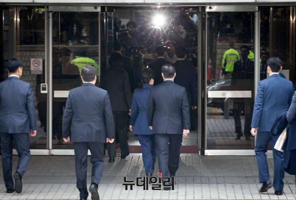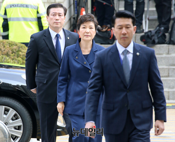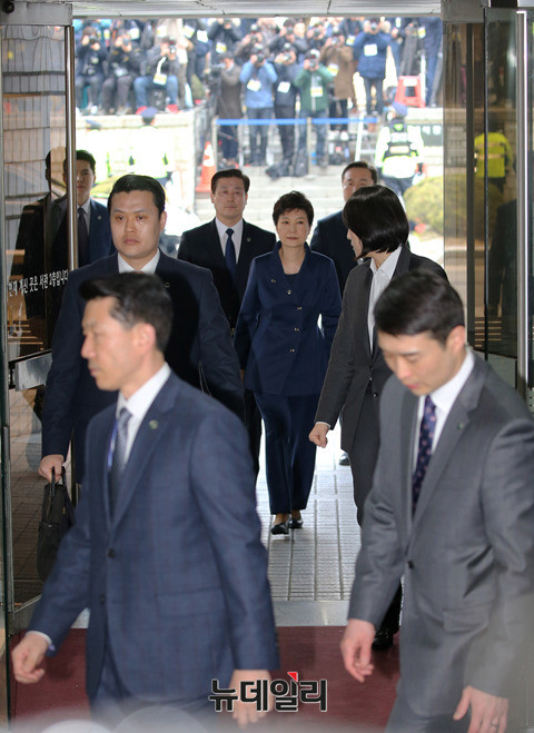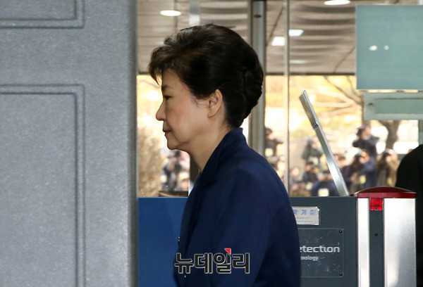 박근혜 전 대통령이 30일 오전 구속영장 실질심사를 받기 위해 서울중앙지법으로 입장하고 있다. 구속여부는 31일 새벽에 나올 것으로 예상된다. (사진=공동취재단)