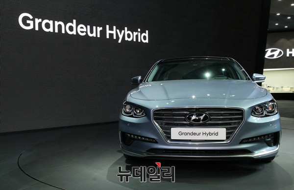 이날 공개한 그랜저 하이브리드는 고효율 하이브리드 시스템을 적용해, 준대형급 동급 최고의 연비 16.2Km/I(신연비 기준)를 달성한 것이 특징이다.