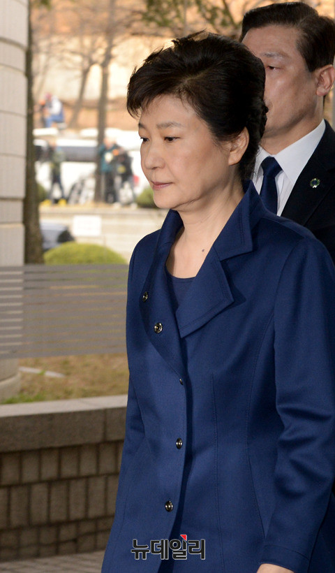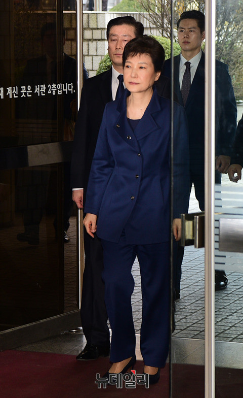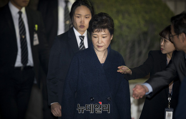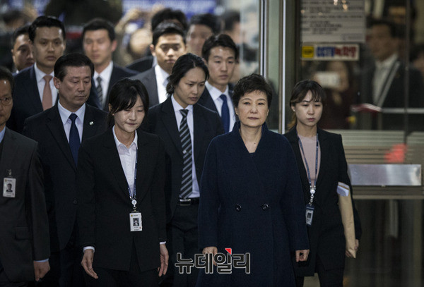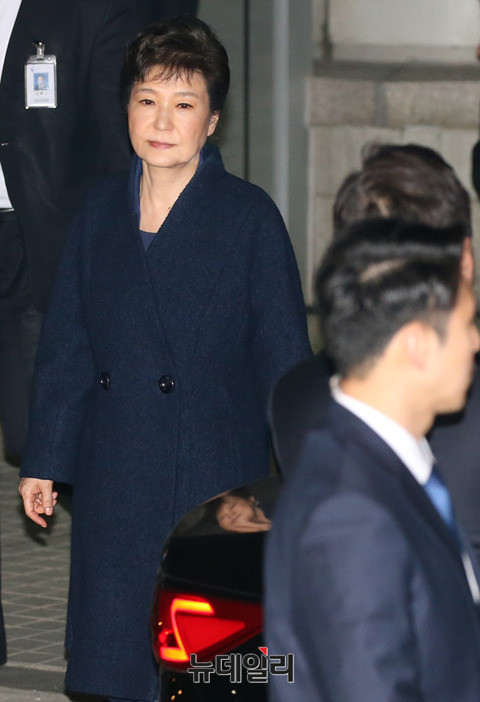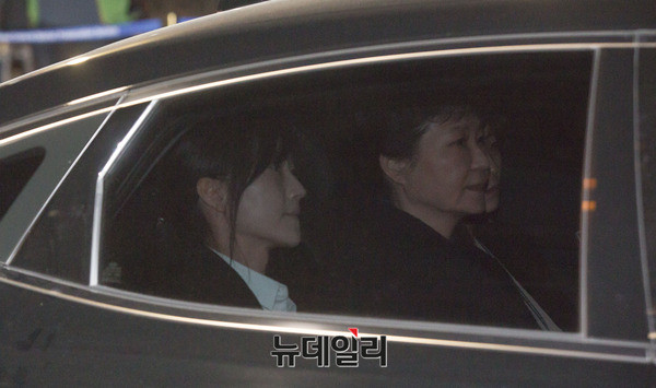 박근혜 전 대통령이 30일 오후 영장 실질 심사를 마친 직후 서울중앙지방법원을 나와 중앙지검으로 이동하고 있다. (사진=공동취재단)
