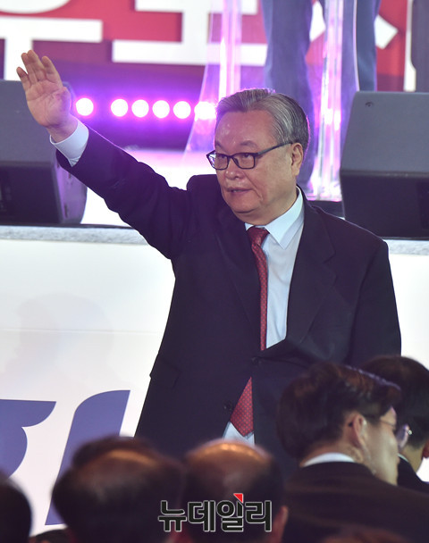 19대 대통령 후보 선출을 위한 자유한국당 1차 전당대회가 31일 오후 서울 중구 장충체육관에서 열린 가운데 인명진 비상대책위원장이 당원들에게 손들어 인사하고 있다.
