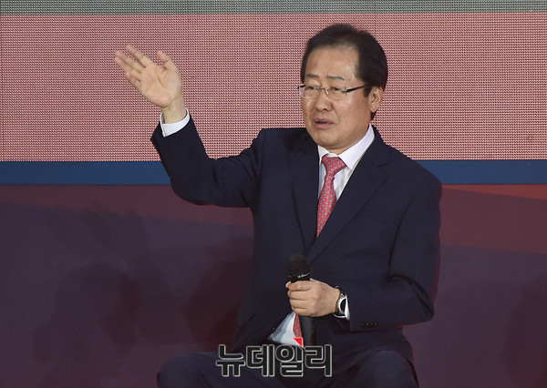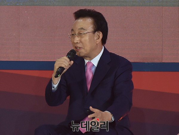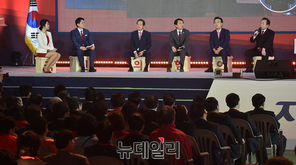 19대 대통령 후보 선출을 위한 자유한국당 1차 전당대회가 31일 오후 서울 중구 장충체육관에서 열린 가운데 입후보한 홍준표 경남도지사, 김진태 의원, 김관용 경북도지사, 이인제 전 의원이 대답회를 갖고 있다.