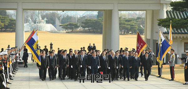 홍준표 자유한국당 대선후보와 지도부가 1일 오전 서울 동작구 국립서울현충원을 찾아 참배하고 있다. 현충탑을 시작으로 홍 후보는 이승만, 박정희, 김대중, 김영삼 전 대통령 묘역을 찾아 각각 참배했다.