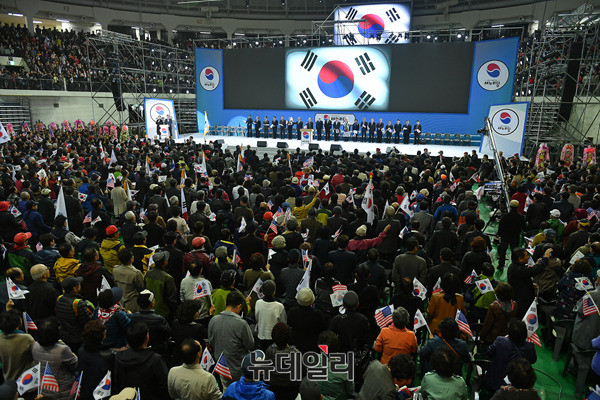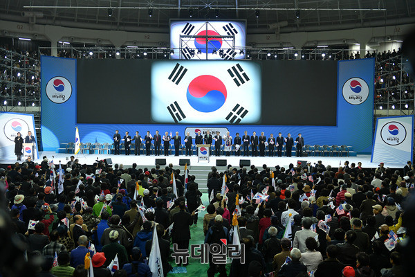 새누리당 중앙당 창당대회가 5일 오후 서울 중구 장충체육관에서 진행됐다. 가칭이던 새누리당 당명은 정식명칭으로 확정됐다. 초대 공동당대표에는 권영해, 정광택 탄기국 공동대표가 맡았다. 사무총장은 정광용 대변인이 맡았다.