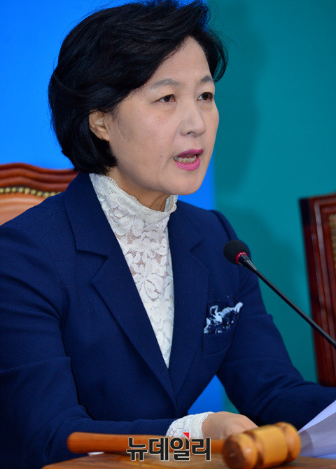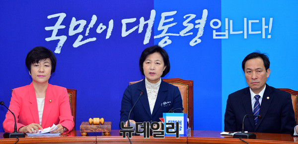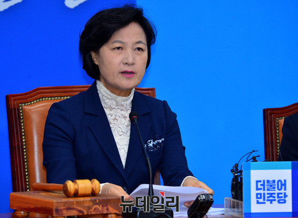 추미애 더불어민주당 대표가 5일 오전 국회에서 열린 최고위원회의에 참석해 발언하고 있다.