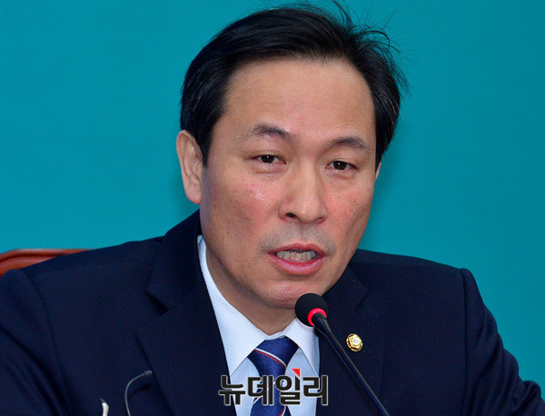 우상호 더불어민주당 원내대표가 5일 오전 국회에서 열린 최고위원회의에 참석해 발언하고 있다.