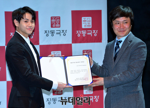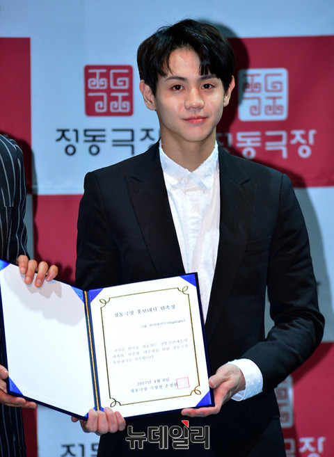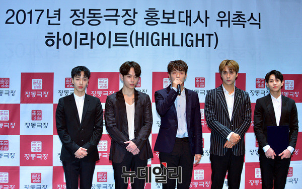 그룹 하이라이트(Highlight : 윤두준, 용준형, 양요섭, 이기광, 손동운)가 6일 오후 서울 정동극장에서 열린 홍보대사 위촉식에 참석해포토타임을 갖고 있다.하이라이트는 홍보대사로써 정동극장과 전통 공연을 알리기 위한 다양한 홍보활동에 나선다.