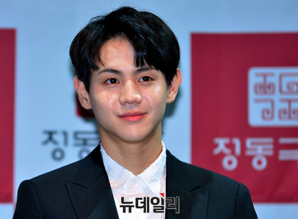 그룹 하이라이트(Highlight : 윤두준, 용준형, 양요섭, 이기광, 손동운) 양요섭이 6일 오후 서울 정동극장에서 열린 홍보대사 위촉식에 참석해포토타임을 갖고 있다.하이라이트는 홍보대사로써 정동극장과 전통 공연을 알리기 위한 다양한 홍보활동에 나선다.