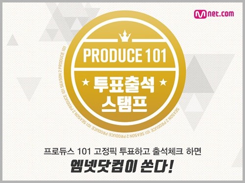 먼저, 출석체크 이벤트는 프로듀스101 투표에 참여한 후 출석 스탬프를 클릭하는 방식으로 진행된다. 1일, 20일, 30일의 스탬프를 완성했을 때마다 상품을 받을 수 있으며, 엠넷닷컴 100회 음악 이용권, 엠넷닷컴 70% 할인 쿠폰, 프로듀스101 맨투맨 등을 추첨을 통해 제공한다.