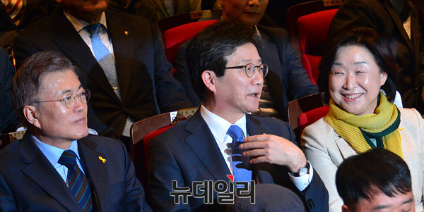 문재인 더불어민주당, 유승민 바른정당, 심상정 정의당 대선후보가 9일 오후 서울 올림픽공원 우리금융아트홀에서 열린 '2017 대한민국 체육인대회'에 참석해 있다.