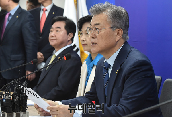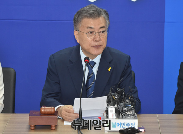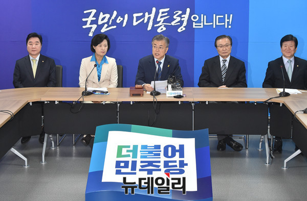 • 문재인 더불어민주당 대선후보가 10일 오전 서울 여의도 더불어민주당사에서 열린 첫 '국민주권 선거대책위원회의'에 참석해 의사봉을 두드리고 있다.
