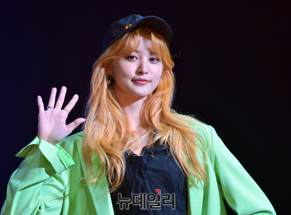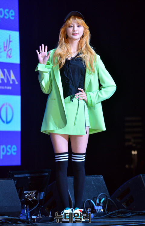 그룹 이엑스아이디(EXID : LE, 정화, 하니, 혜린) 정화가 10일 오후 서울 용산구 블루스퀘어에서 열린 세 번째 미니앨범 '이클립스(Eclipse)' 발매 기념 쇼케이스에 참석해 포토타임을 갖고 있다.