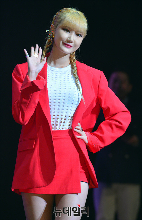 그룹 이엑스아이디(EXID : LE, 정화, 하니, 혜린) EL이 10일 오후 서울 용산구 블루스퀘어에서 열린 세 번째 미니앨범 '이클립스(Eclipse)' 발매 기념 쇼케이스에 참석해 포토타임을 갖고 있다.