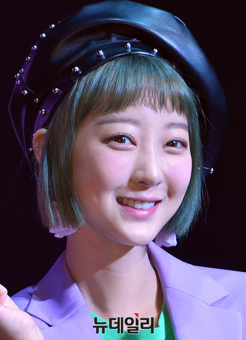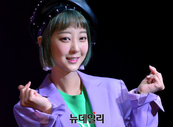 그룹 이엑스아이디(EXID : LE, 정화, 하니, 혜린) 혜린이 10일 오후 서울 용산구 블루스퀘어에서 열린 세 번째 미니앨범 '이클립스(Eclipse)' 발매 기념 쇼케이스에 참석해 포토타임을 갖고 있다.