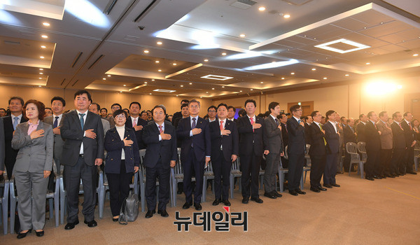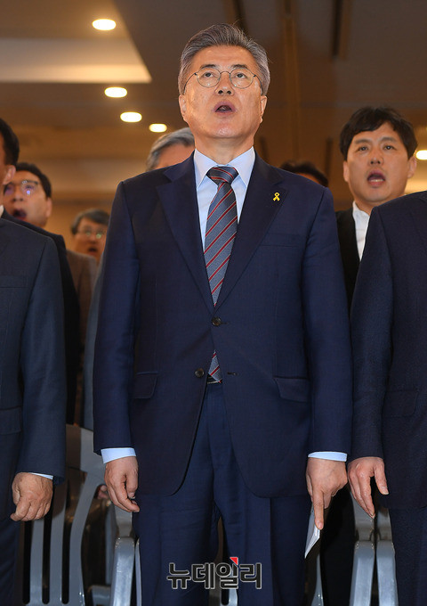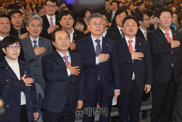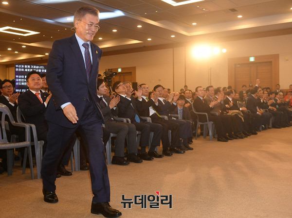 문재인 더불어민주당 대선후보가 11일 오후 부산 벡스코 컨벤션홀에서 열린 부산선대위 출범 및 부산 비전 발표식에서 부산 비전을 발표하고 있다. 문 후보는 이어 범어사 더문캠 불교특위 출범법회에 참석할 예정이다. (부산=뉴데일리 정상윤 기자)