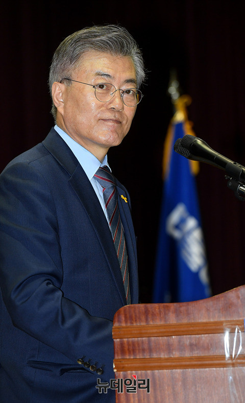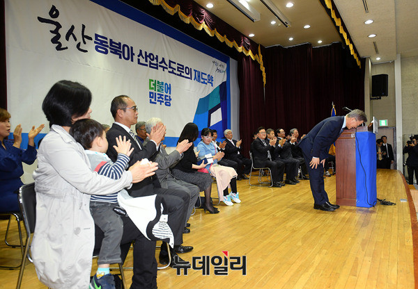 문재인 더불어민주당 대선후보가 11일 오후 울산 남구 울산상공회의소를 찾아 울산 비전에 대해 발언하고 있다. 문 후보는 앞서 부산 벡스코를 방문해 부산 선대위 발대식에 참석했다. 문 후보는 이날 예정이던 비공개 회의를 취소하고, 안보 점검회의를 소집했다. (울산=뉴데일리 정상윤 기자)