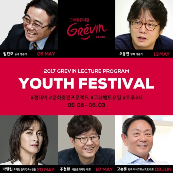 청춘을 위한 문화 충전 프로젝트 '그레뱅 유스 페스티벌(Grevin Youth Festival)'의 일환으로 임진모 음악 평론가, 오동진 영화 평론가, 박칼린 뮤지컬 음악감독·연출 , 주철환 서울문화재단 대표, 고순동 한국 마이크로소프트 대표 5인이 참여한다.