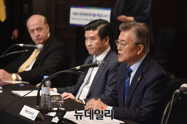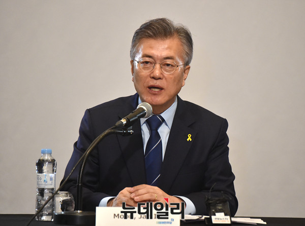 더불어민주당 문재인 대통령 후보가 12일 오전 서울 여의도 콘래드호텔에서 열린 '주한 외국인경제단체와 간담회'에서 발언을 하고 있다.