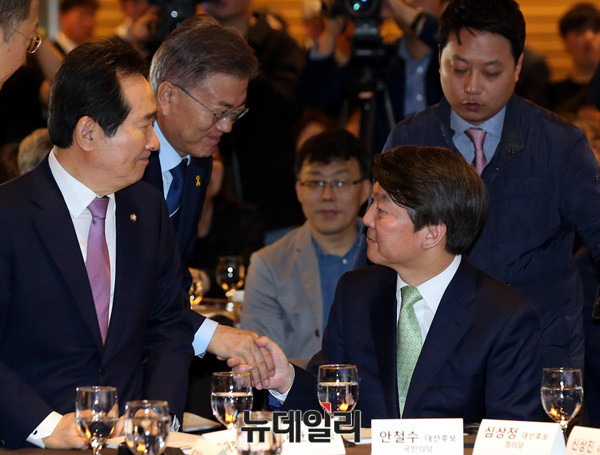 이날 행사에는 홍준표 자유한국당, 문재인 더불어민주당, 안철수 국민의당, 심상정 정의당 대선후보 등이 참석했다. (사진=공동취재단)