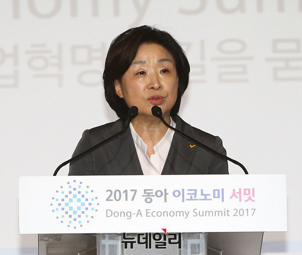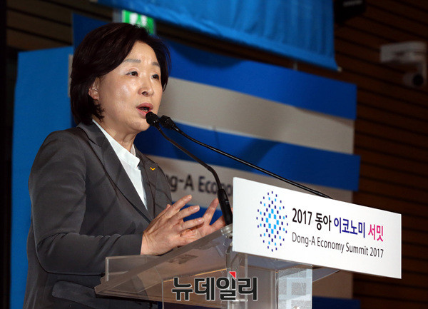 심상정 정의당 대선후보가 12일 오전 서울 여의도 전경련회관에서 열린 '2017 동아 이코노미 서밋:4차 산업혁명의 길을 묻다'에 참석해 축사를 하고 있다.