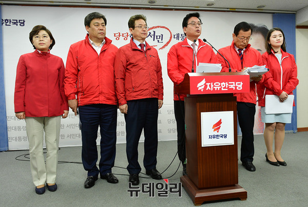 정우택 자유한국당 선대위원장이 12일 오후 서울 여의도 당사에서 교육공약을 발표하고 있다. 이날 발표한 교육공약은 △4단계 희망사다리 교육지원 사업 △취업후 학자금 대출, 무이자 전환 △0학점 0원 △학제개편 등이다.