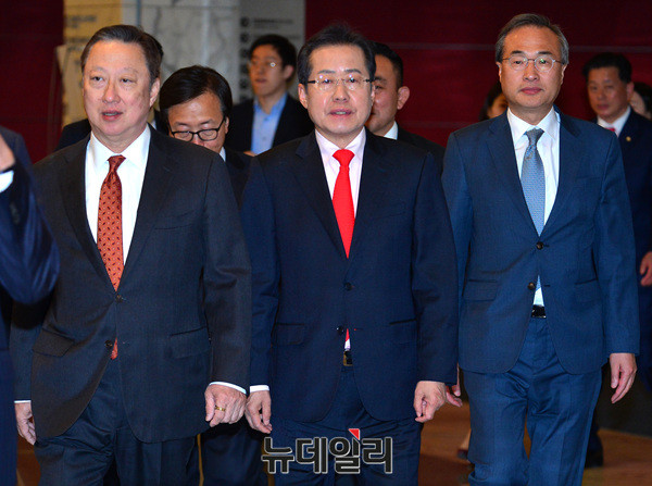 홍준표 자유한국당 대선후보가 13일 오후 대한상공회의소 국제회의장에서 열린 '제19대 대통령후보 초청 특별강연회'에 입장하고 있다.