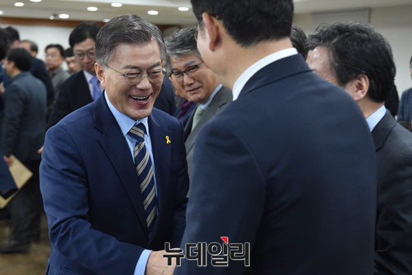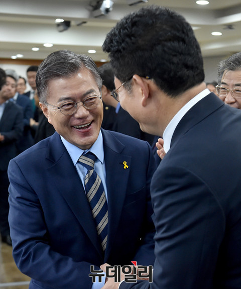 [포토] 참석자들과 인사 나누는 문재인 더불어민주당 대선후보
