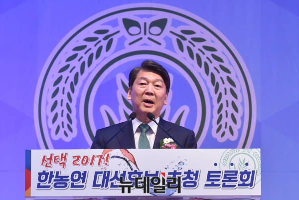 국민의당 안철수 대선후보가 13일 오후 서울 강서구 KBS 아레나홀에열린 '선택 2017! 한농연 대선후보 초청 토론회'에서 발언을 하고 있다.