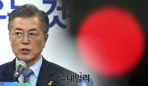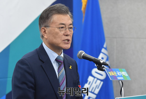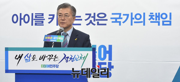 더불어민주당 문재인 대선후보가 14일 오전 서울 여의도 당사에서 보육정책 관련 공약을 발표하고 있다.