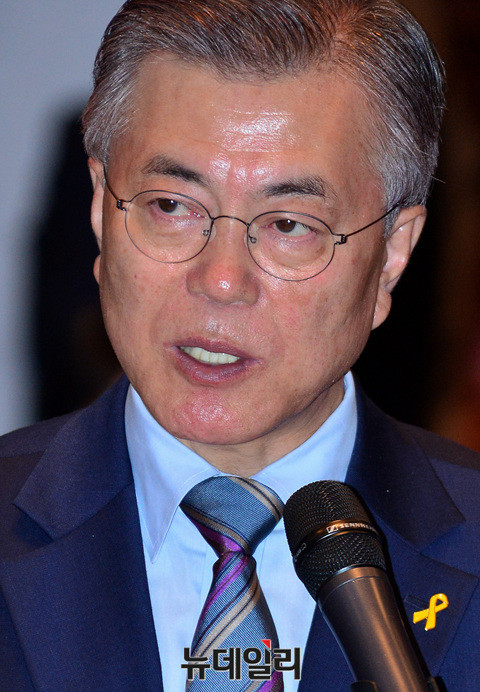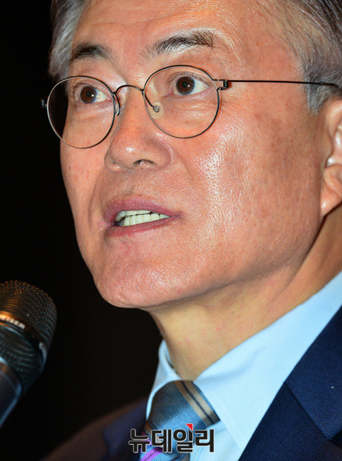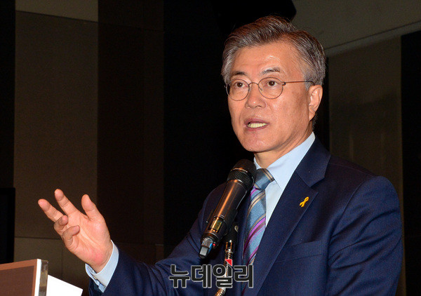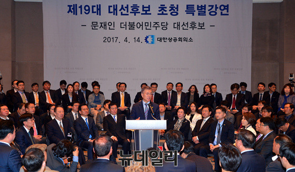 문재인 더불어민주당 대선후보가 14일 오전 한국프레스센터 국제회의장에서 열린 '제19대 대통령후보 초청 특별강연회'에서 경제정책에 참석해 질문에 답하고 있다.
